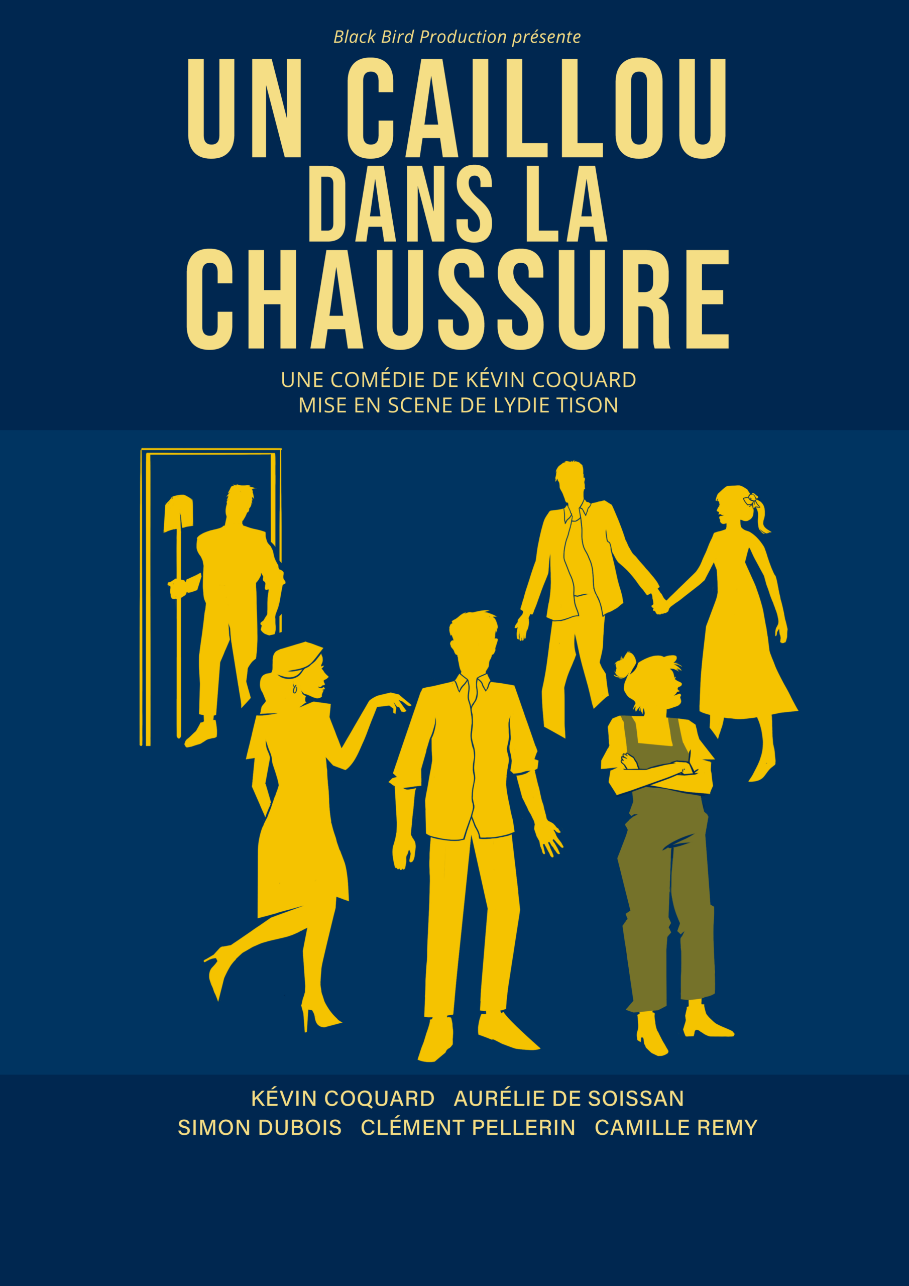 Samedi 21 février 2026 / 20h00 comédie écrite par Kévin Coquard. Comédiens : Kevin Coquard, Aurélie De Soissan, Simon Dubois, Clément Pellerin, Camille Rémy. Mise en scène : Lydie Tison Un caillou dans la chaussure est une comédie qui renoue joyeusement avec la grande tradition du boulevard. Cinq comédiens, six personnages, un huis clos et une mécanique bien huilée où les mensonges s’empilent,...